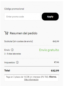 3. Haz clic en el carrito. En la derecha de la pantalla verás un recuadro donde pegar el código promocional. Pégalo y pulsa aplicar.