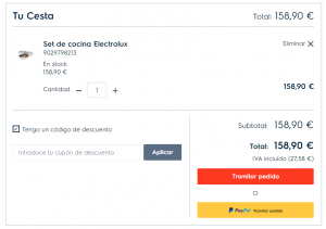 3. Una vez termines de elegir productos, haz click en ver cesta. Debajo del resumen de tu pedido, podrás activar el cuadro que dice “tengo un código de descuento”.