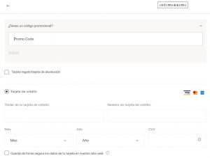 5. A continuación, llegarás al proceso de pago y justo antes de pagar, deberás introducir el cupón descuento Intimissimi.