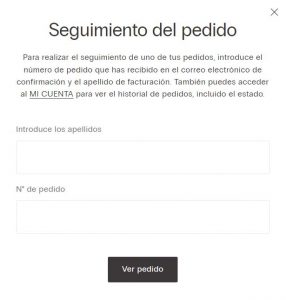 También puedes realizar el seguimiento introduciendo el número de pedido que has recibido en el correo electrónico de confirmación y el apellido de facturación.