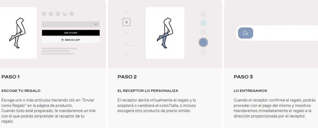 Enviando tu regalo con Smart Gift, el receptor tendrá la posibilidad de aceptar el regalo, personalizarlo o incluso cambiarlo por otro artículo de rango de precio similar. Todo esto antes de que pagues el artículo.