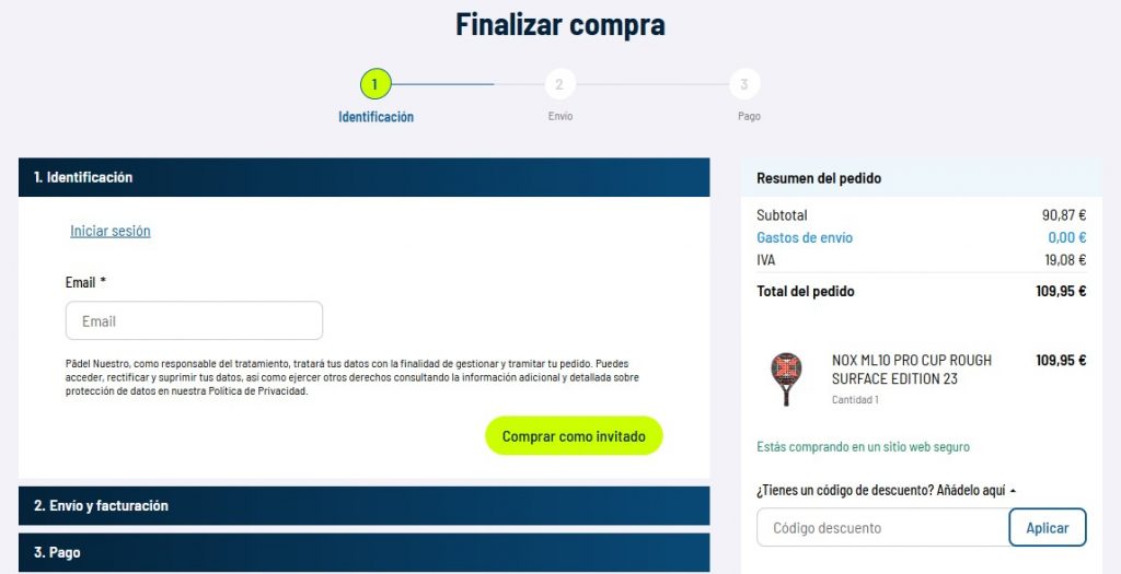 2. Entra en padelnuestro.com y elige los artículos de tu interés agregándolos a tu carrito de compra.