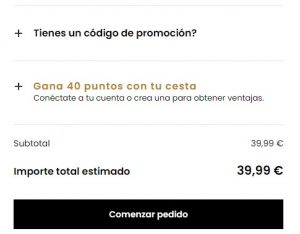 4. Una vez en tu carrito, a la derecha, podrás ver la pregunta “tienes un código promocional?”. Pulsa en el + para que aparezca el cuadro donde has de introducir tu código promocional.