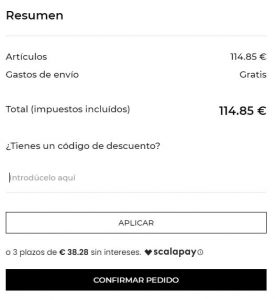 4. Dentro del mismo, dirígete a la parte de abajo, y en el recuadro que dice “¿Tienes un código de descuento?”, haz clic en la casilla de texto y pega el que tenías ya copiado de nuestra web.