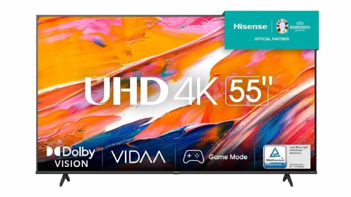 Con una calificación general de 4,6* de 5, esta Hisense de 55” es uno de los televisores Ultra HD más vendidos en PCBox. Con sus características VIDAA Smart TV, Dolby Vision, Alexa integrado, VIDAA Voice y DVB-T2 (H.265), podrás disfrutar de cada jugada, sumergirte en cada partido o vivir cada gol al máximo. Date el gusto con este televisor Hisense 4K que te llevará al centro de cada partido.